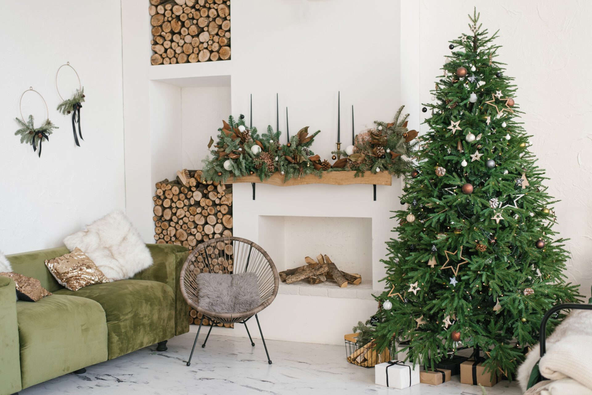Velké ozdoby: Myslete ve velkém! Zvětšené vánoční baňky, plyšoví andělé nebo výrazné hvězdy na vrcholu stromečku. Cokoliv vás napadne.